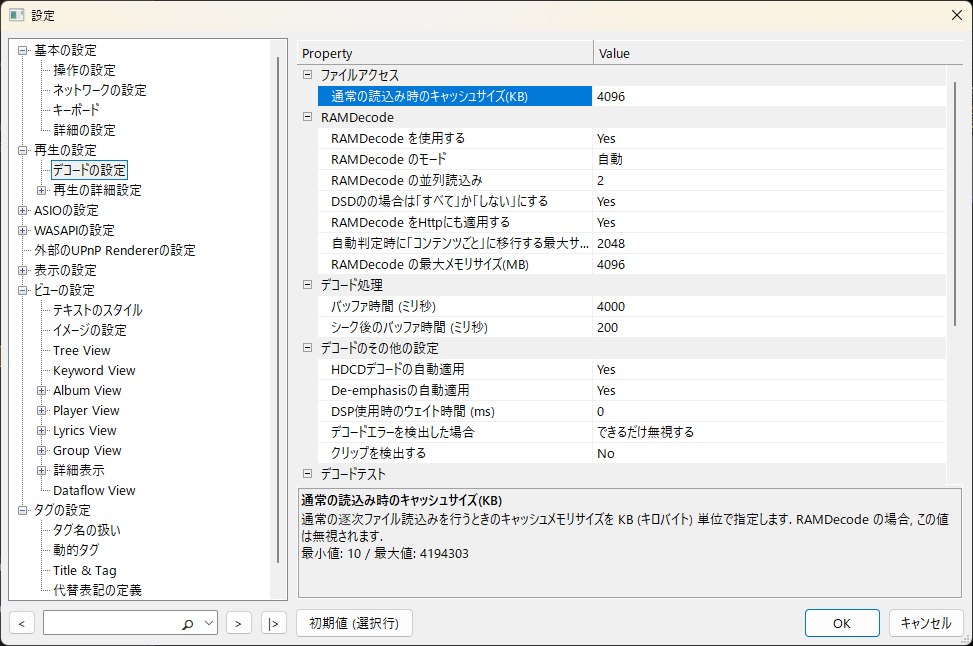 その後、バッファ時間を4000→8000 msほどに増やしたところ、RAMDecodeなしでも96kHz24bit音源が安定して再生できるようになりました。ありがとうございました。2025-10-19 17:53 #17022Tikiキーマスター感想と報告ありがとうございます。よかったです !