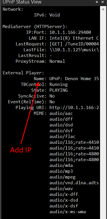フォーラム TuneBrowser [Request] Add IP address display for External Player (Controller) in UPnP Status